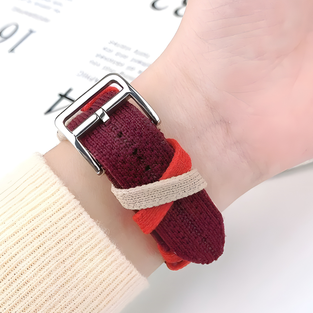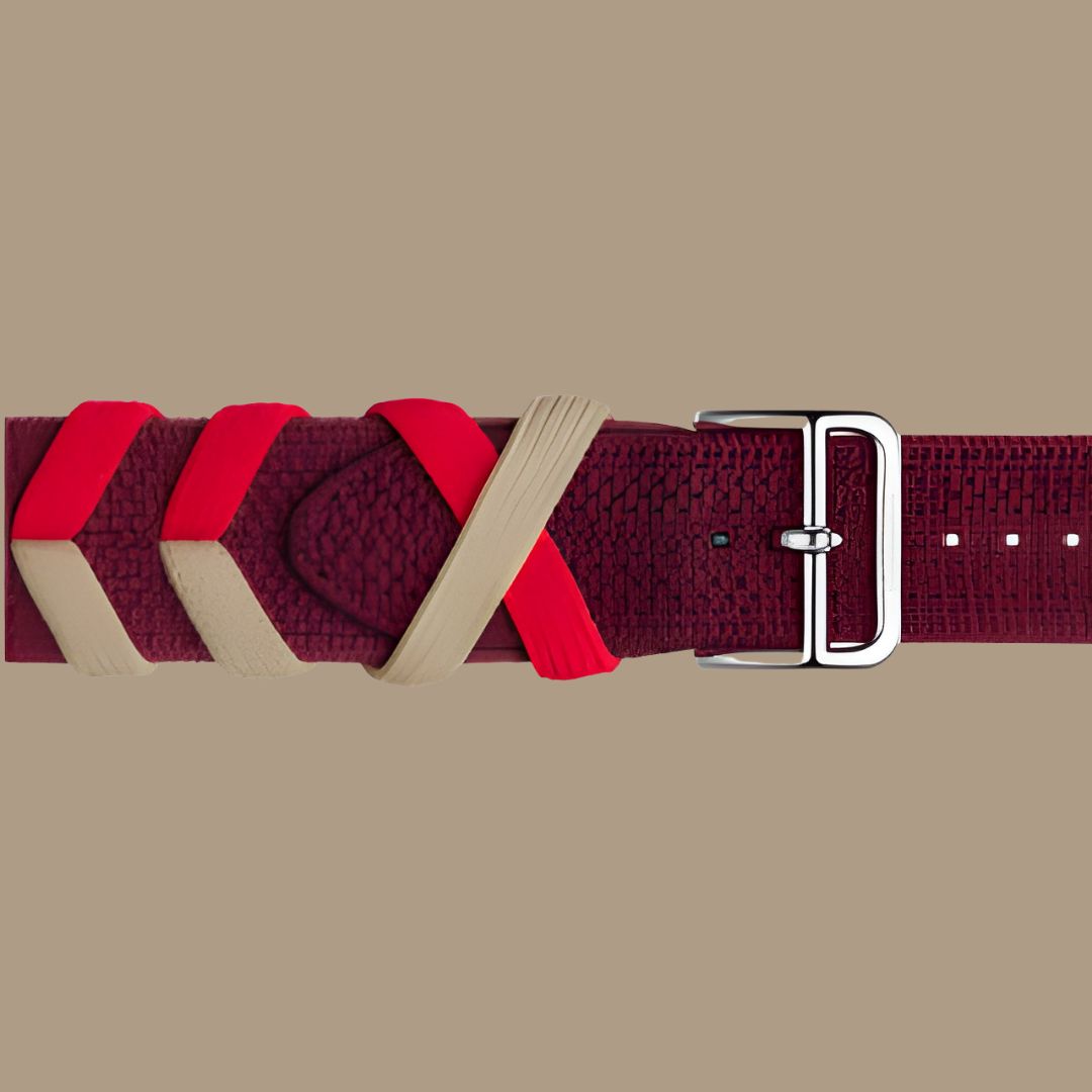 Each chevron, sewn at the center, creates a handcrafted feel, delivering a unique look and unbeatable comfort. Dress it up or down – its universal color blends make it perfect for any occasion. Elevate your style with The Bridled Knitted Weave, where every strap is a wearable work of art.
