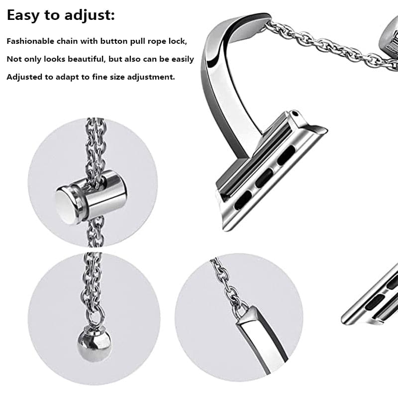 Crafted with meticulous precision from superior stainless steel, the Eclat Apple Watch band transcends ordinary watch bands. Its slim silhouette speaks the language of minimalism, while its delicate design embodies the essence of grace.