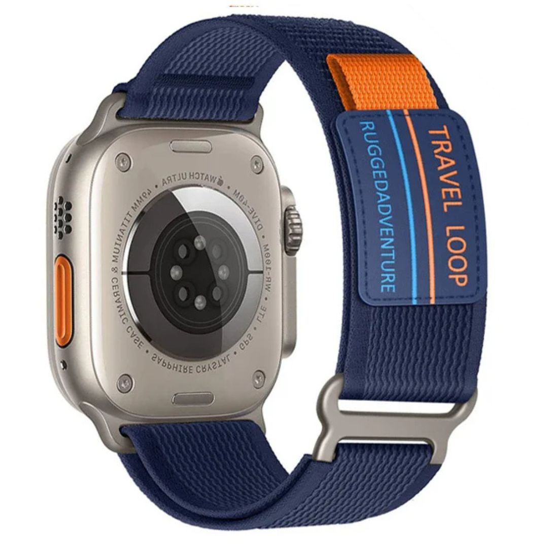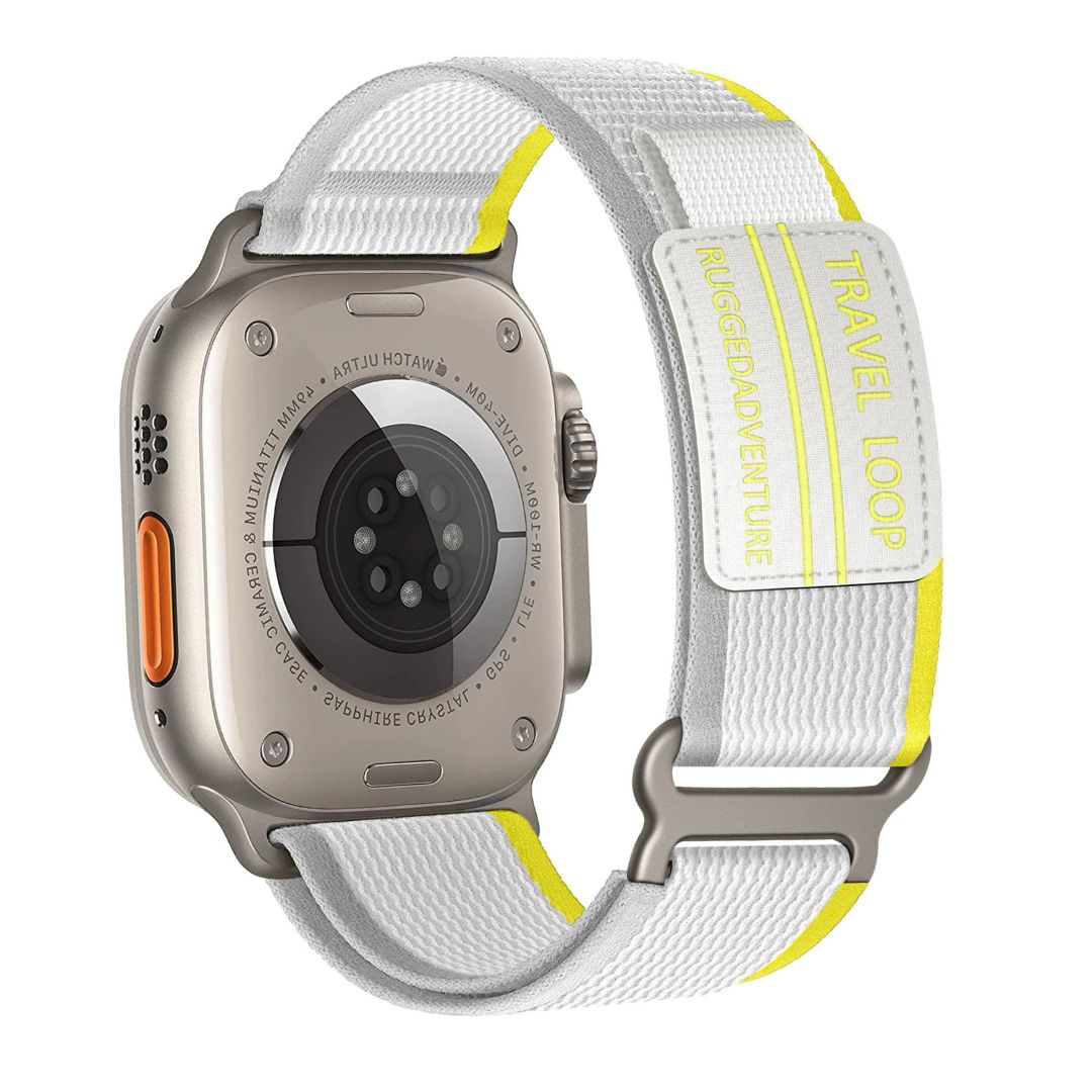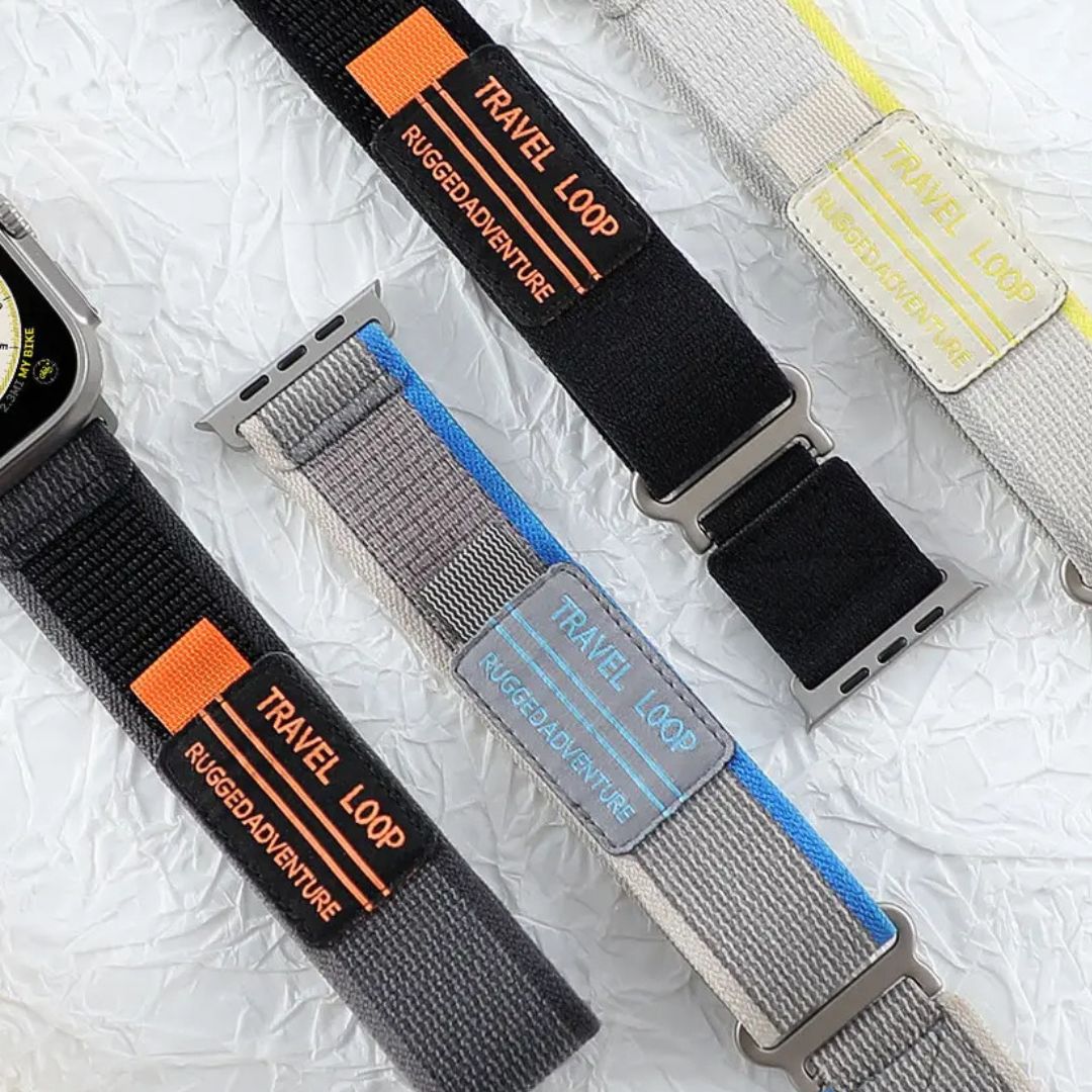 Elevate your Apple Watch experience with The Ultimate Travel Loop Apple Watch Band. Crafted from skin-friendly nylon, it offers unbeatable comfort for all-day wear. The upgraded magic tape ensures a perfect fit, and its lightweight durability stands up to workouts and workdays. With reliable metal connectors, it's a secure attachment to your Apple Watch. Experience the ultimate combination of style and comfort. Get The Ultimate Travel Loop Apple Watch Band today and journey in style!