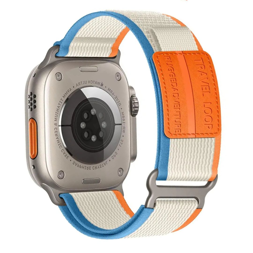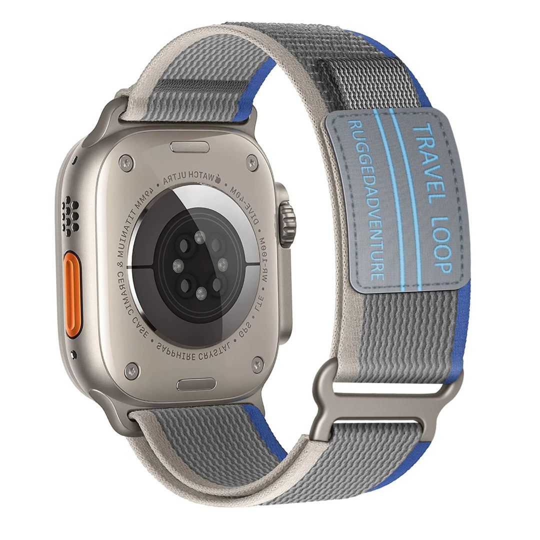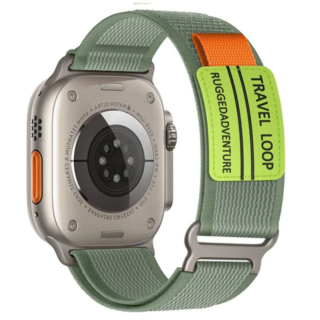 Elevate your Apple Watch experience with The Ultimate Travel Loop Apple Watch Band. Crafted from skin-friendly nylon, it offers unbeatable comfort for all-day wear. The upgraded magic tape ensures a perfect fit, and its lightweight durability stands up to workouts and workdays. With reliable metal connectors, it's a secure attachment to your Apple Watch. Experience the ultimate combination of style and comfort. Get The Ultimate Travel Loop Apple Watch Band today and journey in style!